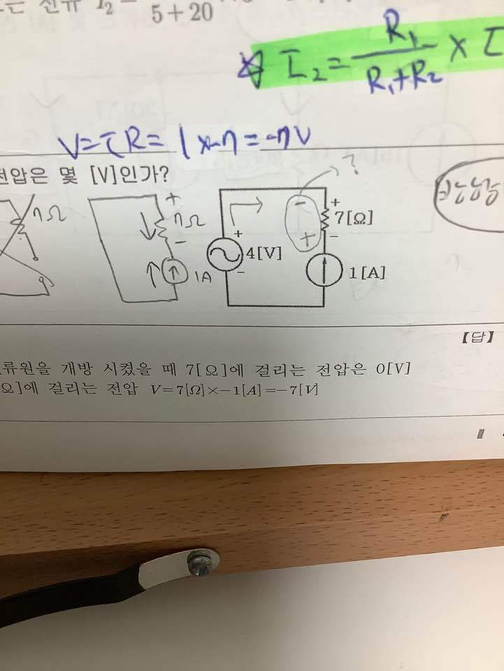 그러니 전압원 +에서 출발하여 도선을 따라 -에 도착하는 방향으로 가는것도 알겠고 전류원은 그에 반대방향으로 그려져 있어 4v전압원에서 나오는 전류를 방해하는 것 까지는 이해가 됬는데 문제는 저항7옴에 극성이 이해가 안갑니다. 전류원의 방향이 위를 하고 있어 (?)표시 한곳 처럼 위가 -, 아래가 +가 된다는데.... 제 상식에서는 +에서출발,-에 도착 인데 저렇게 되면 전압원에서 나오는 전류가 같은 방향으로 된다는 뜻 아닌가요..?