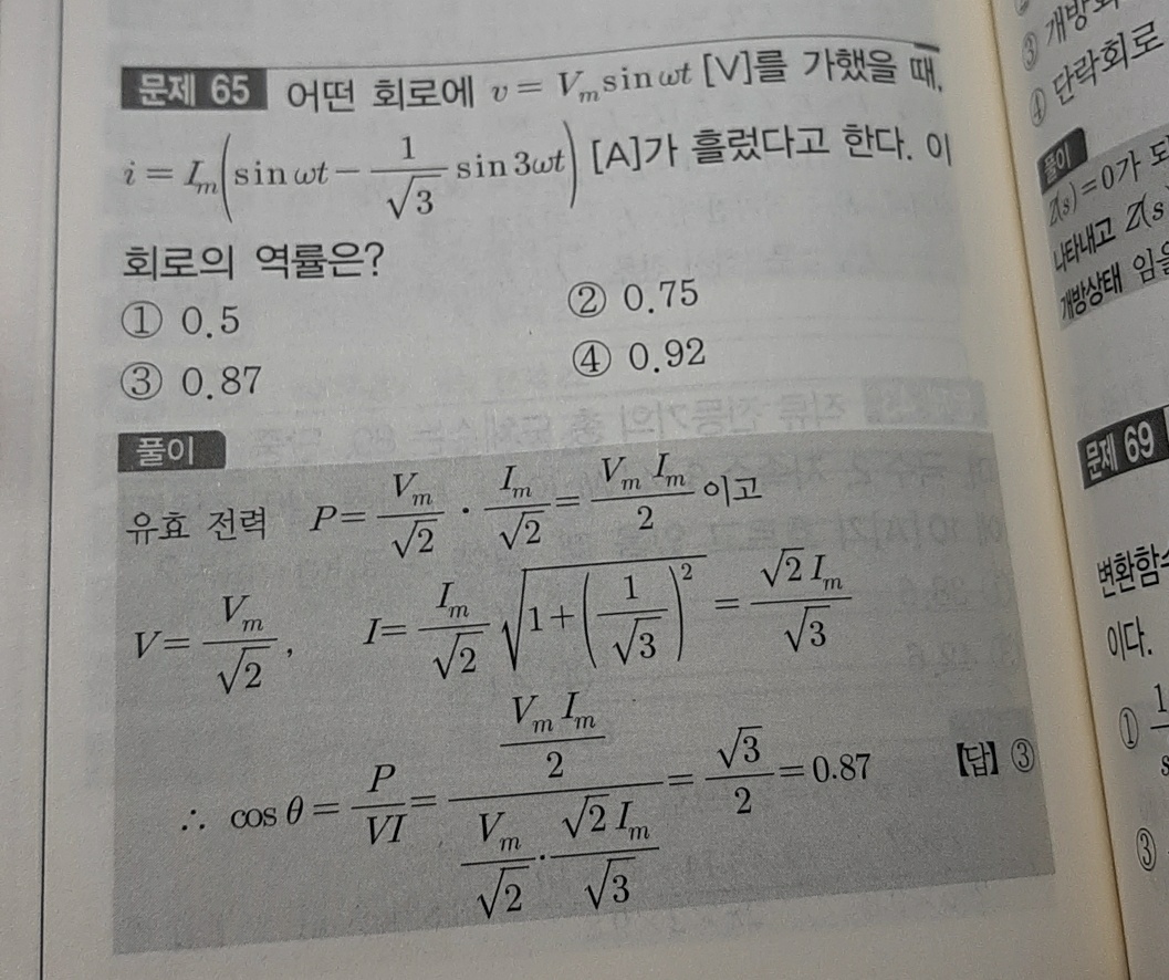 위 사진에 나오는 피상전력을 구하는 두 가지 식 중 2번만 사용가능하죠. 왜냐면 전압엔 3고조파가 없으니까요. 이런 경우는 어떻게 해석해야 할까요?