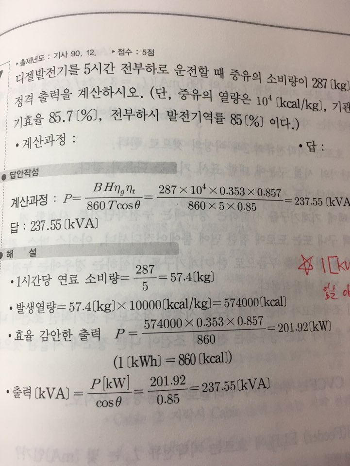 효율 감안한 출력 P에서 분모의 값의 단위는 [kcal] 아닌가요? 그러면 860으로 나눠주면 단위가 [kW]가 아닌 [kWh]가 나와야 하는데 자연스럽게 [kW]가 나와서 너무 헷갈립니다.