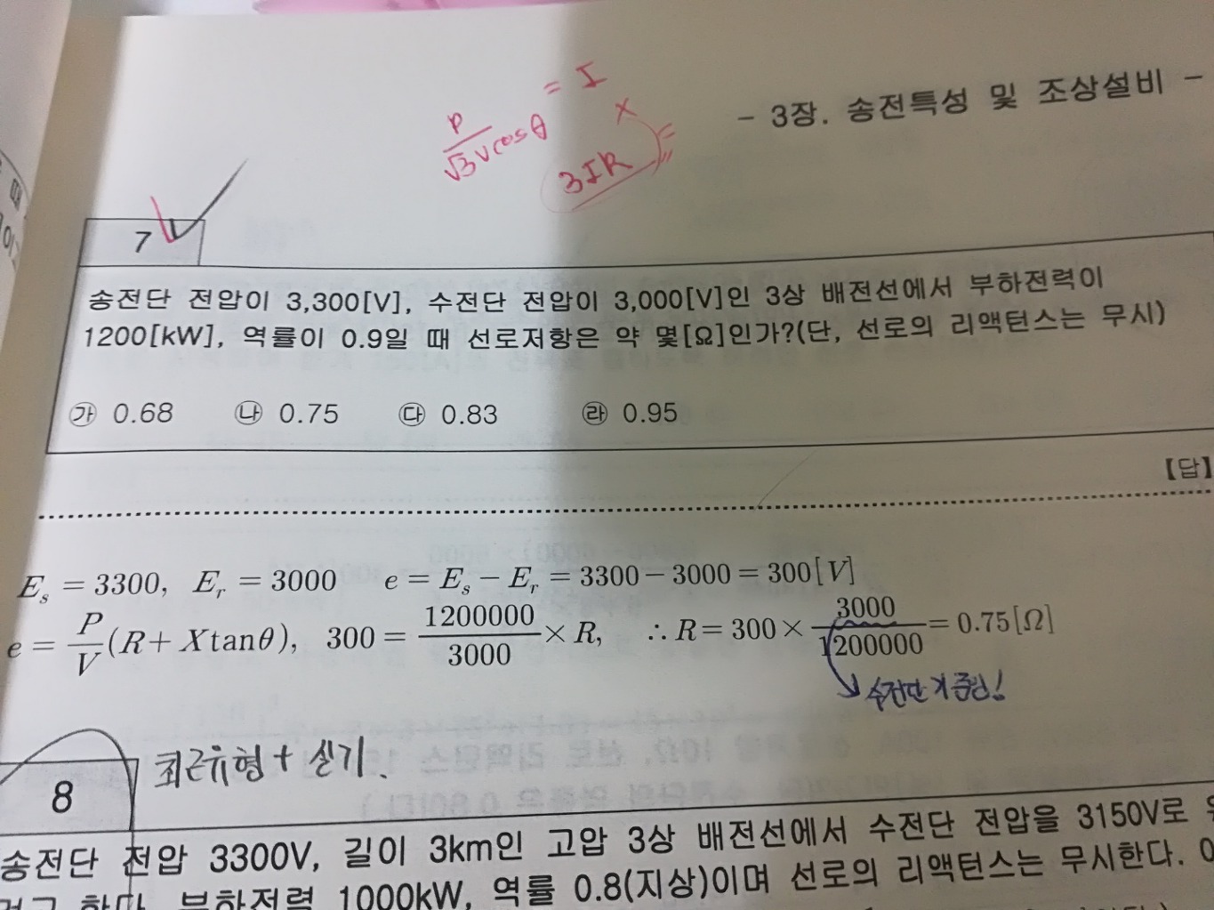 이문제들에서는 전압강하율을 구할때 전류가 아닌 전력과 역률 전압을 가지고 구하는데 어떨때는 수전단 전압이고 어떨때는 부하전압입니다 그래서 둘이 같겠구나 싶었었습니다 그런데