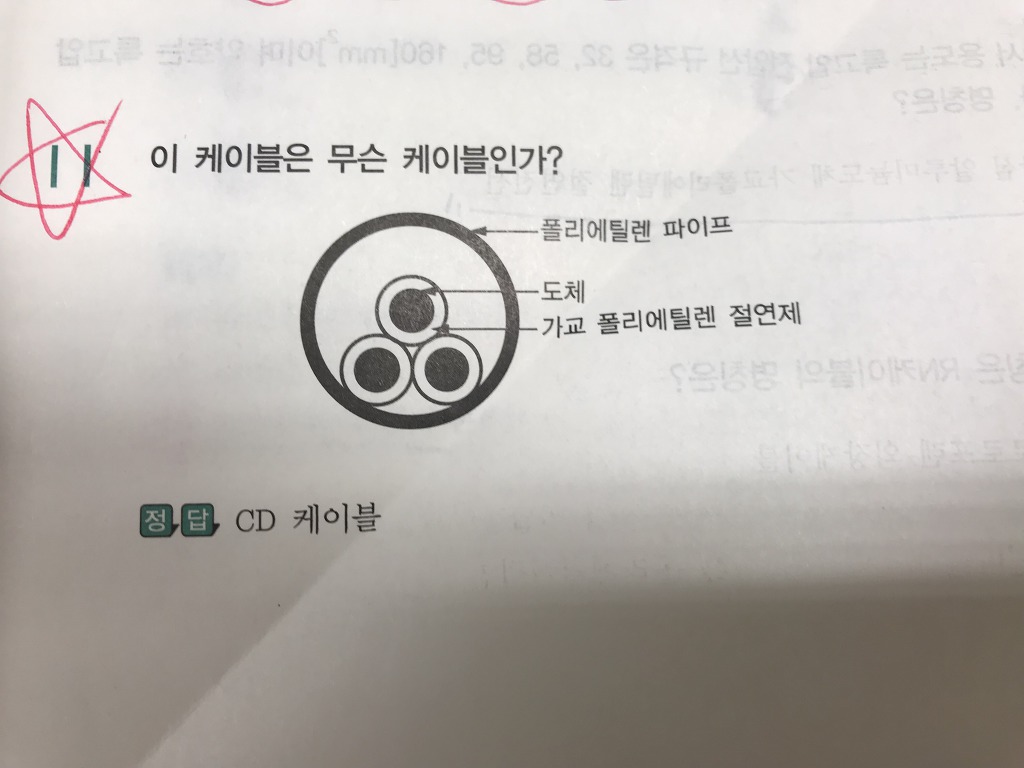 (간단) 케이블 질문이요~ 작성자Jake|작성시간19.08.26|조회수1,476 목록 댓글 2 글자크기 작게가 글자크기 크게가 문제 답이 CD케이블로 되어있는데,C : 가교폴리에틸렌E : 폴리에틸렌이렇게 해서, CE케이블이 아닌가요...?아니면 콤바인덕트 케이블을 설명하는 건가요..? 다음검색 현재 게시글 추가 기능 열기 북마크 공유하기 신고 센터로 신고 댓글 댓글 2 댓글쓰기 답글쓰기 댓글 리스트 작성자사시랑이 | 작성시간 19.08.27 안녕하세요..답변드립니다 CE 케이블은 가교 폴리에틸렌 절연 폴리에틸렌 시스 케이블을 말합니다 위의 케이블은 최외각에 폴리에틸렌 파이프가 위치하고 있으며 이를 CD케이블로 암기해 주시기 바랍니다. 답댓글 작성자Jake 작성자 본인 여부 작성자 | 작성시간 19.08.27 CD케이블로 외워야 겠네요.. 감사합니다. 댓글 전체보기