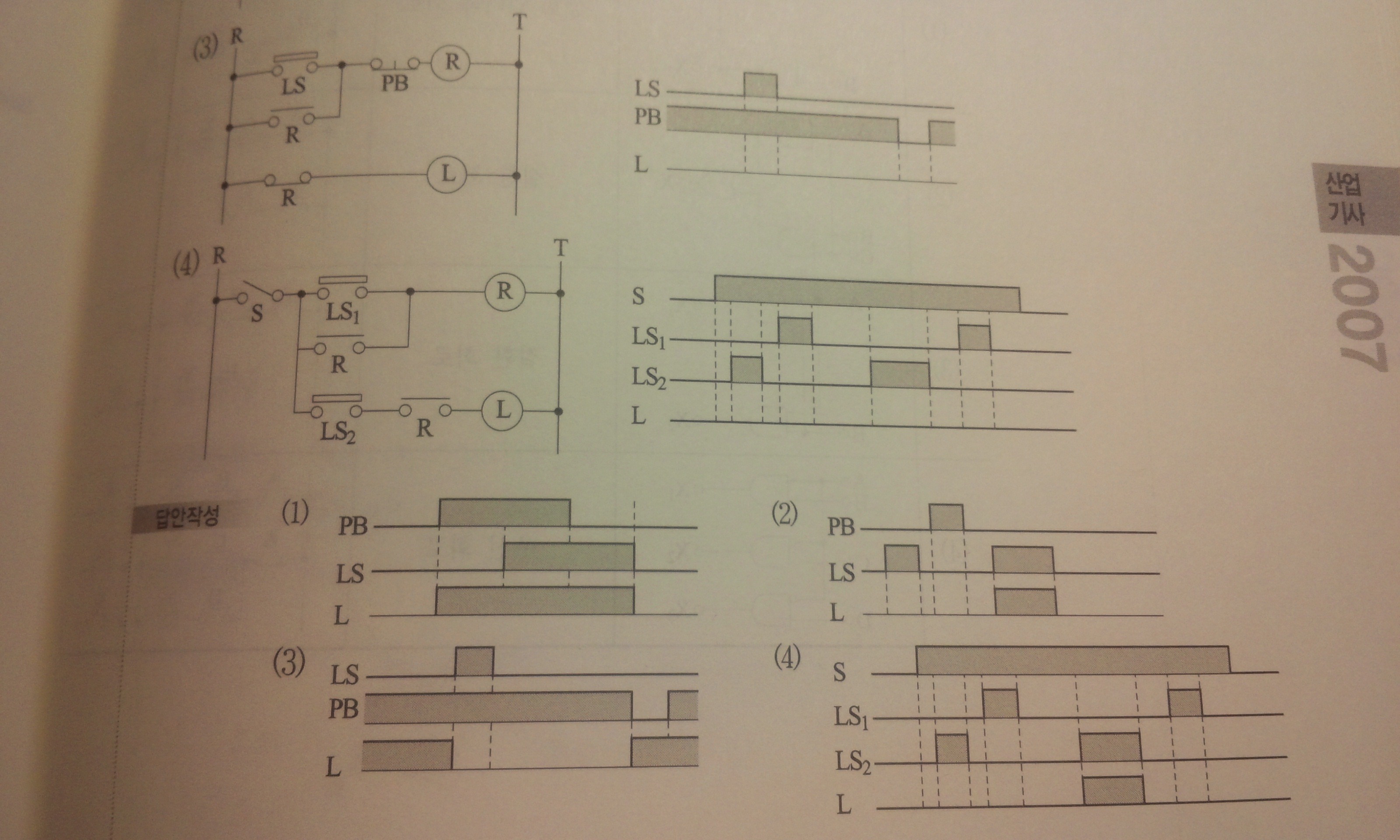 작성자qweaax 작성시간 13.10.04 4번 설명할게요. 초기에 s가 개방된 상태입니다. 아무 동작도 할수 없는거죠. 그 상태에서 타임차트를 보면 s를 젤 처음에 닫습니다..릴레이도 소자된 상태이고 렘프도 소등된상태이죠? 그 상태에서 ls1을 누르면 r이 여자가 되고 r의 각 접점들이 닫힙니다. 아직 램프는 소등이 안되는 상태이고 ls2를 누르면 램프가 점등됩니다. 단 ls2를 누르는 순간에만 점등이되는겁니다..