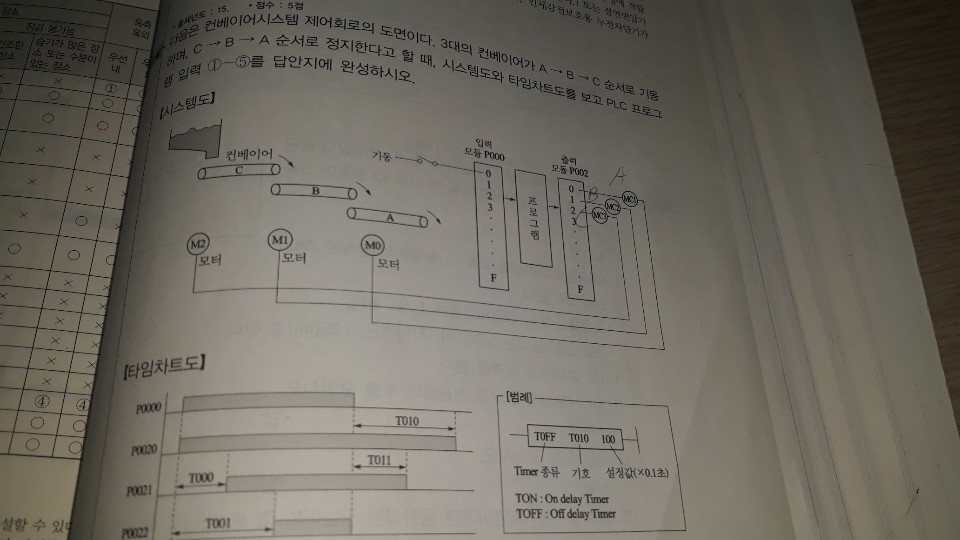 이 타임차트로 PLC 회로 값을 구하는문제입니다.