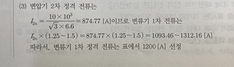 변류기 1차측 정격 전류는 변압기의 2차 정격 전류로 구하는 건가요? 작성자1011000101001|작성시간20.07.27|조회수2,421 목록 댓글 1 글자크기 작게가 글자크기 크게가 변압기 2차 정격 전류를 구하고 여기에 1.25~1.5배를 곱한 값에서 나온 범위에 맞는 값을 구하나요?정규반을 대충 들었나봐요,, 1.25~1.5 곱하는 건 못 들어 본 것 같아서요,, 다음검색 현재 게시글 추가 기능 열기 북마크 공유하기 신고 센터로 신고 댓글 댓글 1 댓글쓰기 답글쓰기 댓글 리스트 작성자헤븐2 | 작성시간 20.08.05 변압기 2차측에 변류기가 연결되있는것 같은데1. 변압기 2차측 자체에 흐르는 전류의 값을 구하고 그게 변류기 1차측에 흐르는 전류 입니다.2. 변류기에 흐르는 1차측 '정격'전류를 구할 때에는 여유율에 해당하는 1.25~1.5배를 곱해서 구합니다.3. 변류기 1차측 정격전류표를 이용하여 '2'번에서 구한 값의 사이의 값에 해당하는 정격을 찾아서 답을 구합니다. 댓글 전체보기