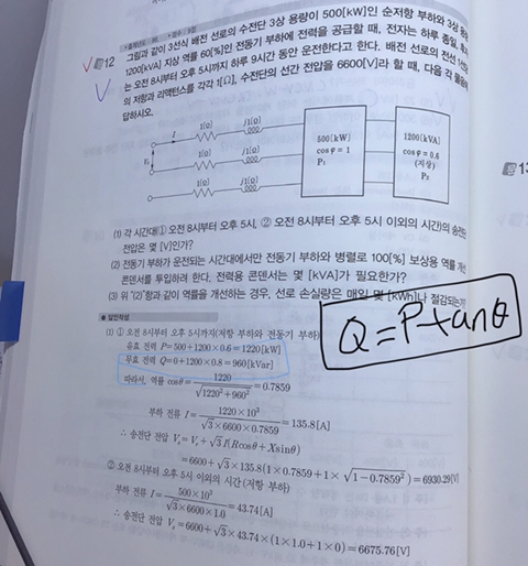 무효전력 질문 작성자정굴이|작성시간20.11.21|조회수165 목록 댓글 2 글자크기 작게가 글자크기 크게가 사진속의 문제에서는 Q=P sin세타 로 하는데원래 Q= P tan세타 잖아요 언제 사인을 쓰고 언제 탄젠트를 쓰는건지 헷갈려요ㅜㅜㅜ 다음검색 현재 게시글 추가 기능 열기 북마크 공유하기 신고 센터로 신고 댓글 댓글 2 댓글쓰기 답글쓰기 댓글 리스트 작성자뛰슬띠 | 작성시간 20.11.21 저기서 1200은 유효전력이 아니라 피상전력이에요 단위가kva라서 답댓글 작성자정굴이 작성자 본인 여부 작성자 | 작성시간 20.11.21 피상전력으로 주어졌을때는 그럼 저렇게 하면되는건가요?.. 댓글 전체보기