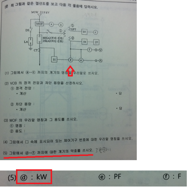 CT와 PT가 연결되어있을때 빈칸 2자리가 있는 경우 KW PF가 들어가는것은 암기하고 있는데요