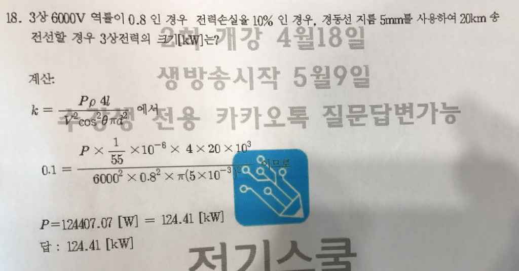 선생님 산업기사 기출문제 해석부탁드립니다 작성자사시랑이동생|작성시간17.04.20|조회수217 목록 댓글 1 글자크기 작게가 글자크기 크게가 얼핏 본것 같은데 기억이 안나서요.. 자세히 설명 부탁드릴게요. 아 자료는 타사이트에서 먼저 올라와서 오답정리 한다고요. 다음검색 현재 게시글 추가 기능 열기 북마크 공유하기 신고 센터로 신고 댓글 댓글 1 댓글쓰기 답글쓰기 댓글 리스트 작성자사시랑이 | 작성시간 17.04.21 안녕하세요...이 공식은 기사 필기 - 전력공학 - 전압의 n배 승압 부분에 나오는 내용입니다. 여기에서 분모에 면적이 들어가는데, 면적 = 파이*지름의 제곱/4 이기 때문에 분모의 1/4가 분자로 넘어가 4가 곱해진 것입니다. 댓글 전체보기