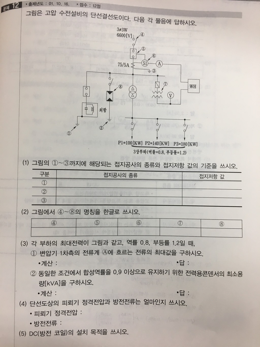피뢰기의 공칭방전전류와 정격전압 질문입니다. 작성자화이팅맨|작성시간17.06.13|조회수582 목록 댓글 2 글자크기 작게가 글자크기 크게가 (4)번 문제에서 피뢰기의 정격전압과 공칭방전전류 구하는 문제 질문인데요. 다음 표에서 무엇을 기준으로 하여 답안작성 해야하나요? 다음검색 현재 게시글 추가 기능 열기 북마크 공유하기 신고 센터로 신고 댓글 댓글 2 댓글쓰기 답글쓰기 댓글 리스트 작성자째끼네바둥 | 작성시간 17.06.13 변압기 1차측보시면 6600이니까 피뢰기정격전압은 7.5kv입니다.일단은 배전선로냐 변전소냐가 중요한데 1차측전압보면 배전선로입니다. 즉 2500a겠네요.전 자러..가보겠습니다. 답댓글 작성자화이팅맨 작성자 본인 여부 작성자 | 작성시간 17.06.13 넵! 확인했습니다.알려주셔서 감사합니다. 편히 주무세요~^.^ 댓글 전체보기