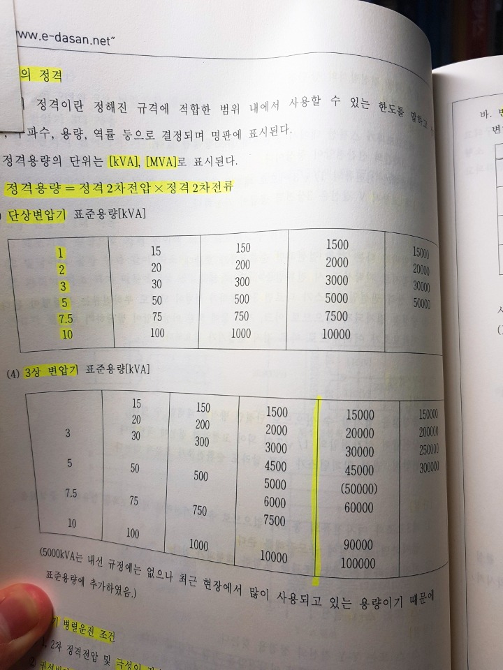 변압기에서 표준규격이라고 하는것은 실제 많이 사용되는 용량을 의미하며,