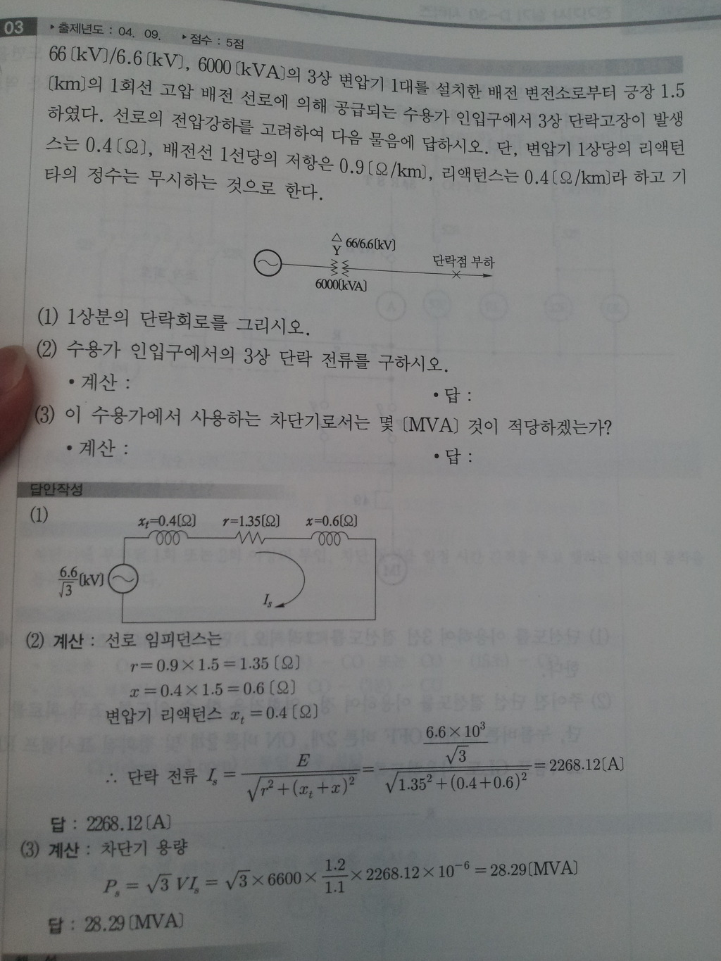 2번의 단락전류를 구할때 상전압 즉 공칭전압을 이용하여 구하는것과 달리 3번 단락용량을 구할때는 정격전압으로 환산하여 구합니다.