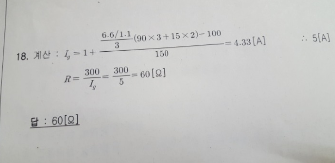 제2종 접지 저항값의 최대 구할때 작성자korea_US|작성시간18.11.09|조회수503 목록 댓글 4 글자크기 작게가 글자크기 크게가 Ig가 4.33인데 왜 5A로 바꾸는 건가요? 다음검색 현재 게시글 추가 기능 열기 북마크 공유하기 신고 센터로 신고 댓글 댓글 4 댓글쓰기 답글쓰기 댓글 리스트 작성자한라 | 작성시간 18.11.09 정수로 올림 작성자WARSHIP | 작성시간 18.11.09 지락전류 구할때는 무조건 올려요..그리고 2미만이면 0.5라도 무조건 2로 해야되고요 작성자장성호목동 | 작성시간 18.11.10 절상하도록 정해져있습니다. 소수점무조건 올림하세용 작성자새옹지마윤 | 작성시간 18.11.20 지락전류 Ig를 구할때 절상 해야합니다. 지락전류 구하는 해설을 참고 하여 보세요 0.1111(A)가 나와도 2(A)로 절상 댓글 전체보기