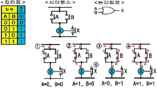 두 개의 접점 중 하나만 동작해도 출력되는 회로를 말한다.