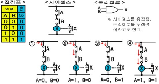 두 개의 접점 A, B 가 모두 동작해야 출력되는 회로를 말한다.