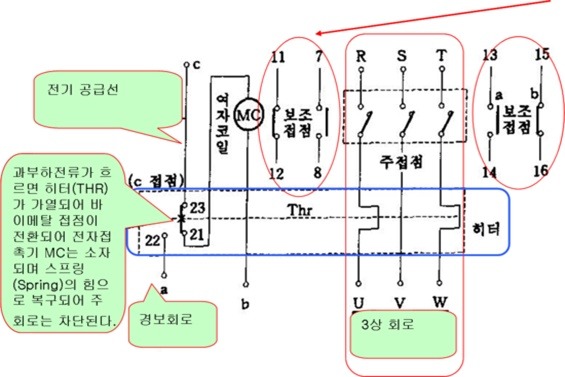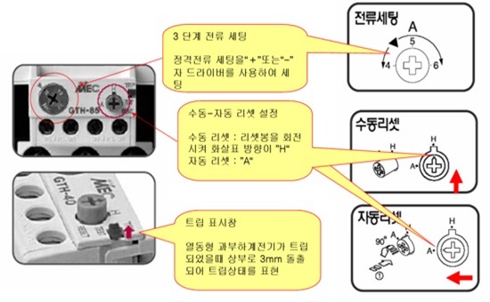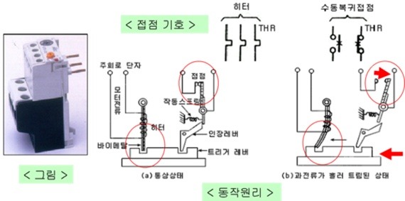 - 주회로에 삽입된 히터에 과전류(모터 등의 과부하 전류)가 흐르면 바이
