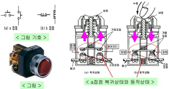 ⇒ 조작중에만 접점 상태가 변하고 조작을 중지하면 원래상태로