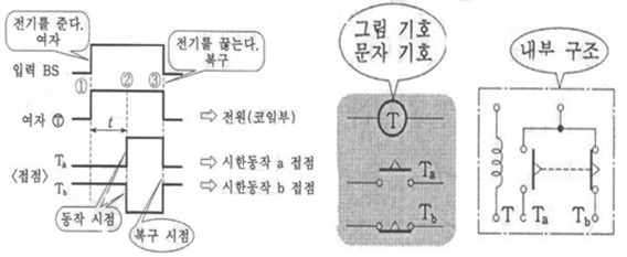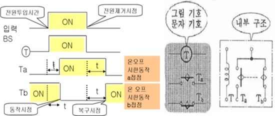 - 타이머 코일에 전기를 공급(동작함) 전기를 끊으면 순간 복구