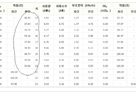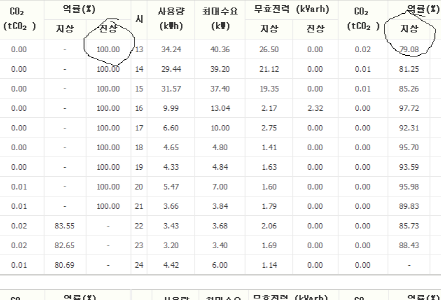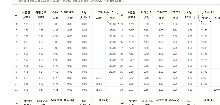 동그라미 친 경부하 시간인 새벽에 진상 역률이 엉망이 됨