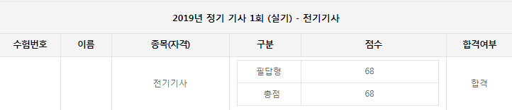 이번에 4학년 학교 다니면서 전기기사 1회 실기 합격을 했습니다 ㅎㅎ