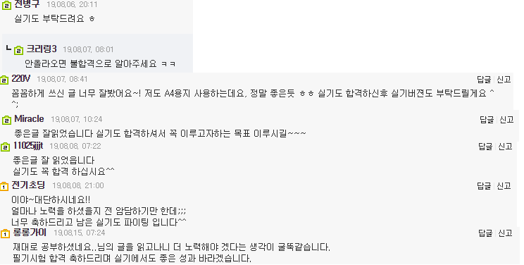 1. 필기 합격 후기 남기기(독자들의 댓글로 인해 실기 공부때 힘을 상당히 많이 받습니다.)