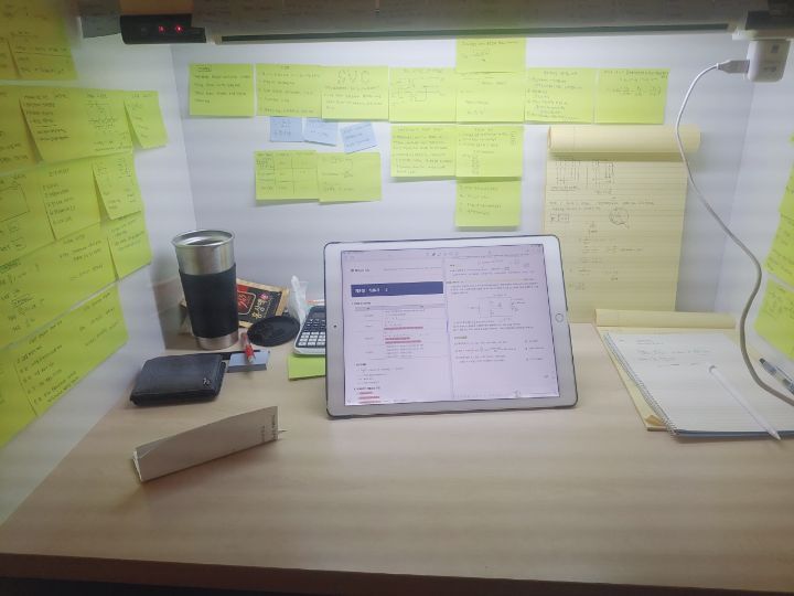 단답 뿐만 아니라 수력발전기 전력 공식/ 풍력발전기 전력 공식등 비슷한 공식들을 포스트잇에 적어 서로 한번에 비교할 수 있게 배치시켜놓는 방법 또한 추천합니다. 워낙 비슷한 공식들이 많기 때문에 따로따로 외우게되면 헷갈립니다.