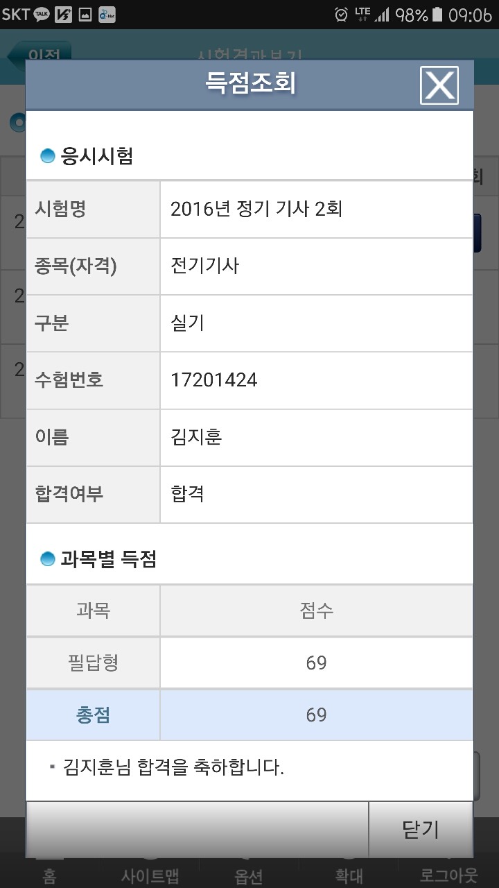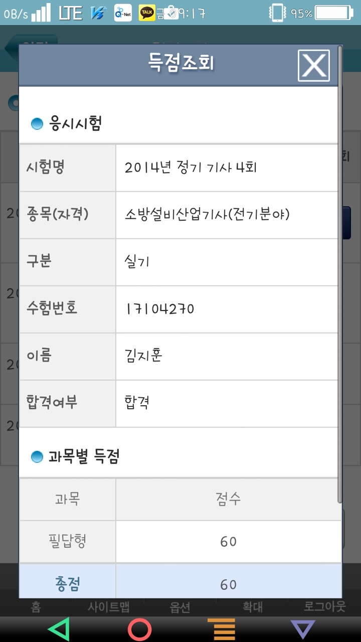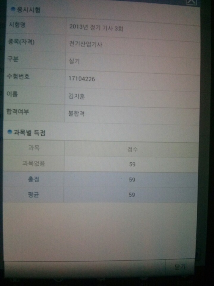 네 가채점결과 답이 확실한 문제만 채점 했을 때 50점대 후반이라 포기하고 있었지만 10점정도 플러스해서 합격했네요