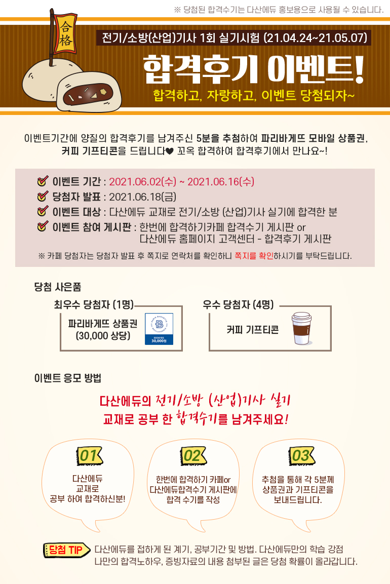 [이벤트종료] 2021년 1회 전기·공사(산업)기사 실기 합격후기 이벤트! 작성자다산에듀|작성시간21.06.02|조회수185 목록 댓글 0 글자크기 작게가 글자크기 크게가 다음검색 현재 게시글 추가 기능 열기 북마크 공유하기 신고 센터로 신고 댓글 댓글 0 댓글쓰기 답글쓰기 댓글 리스트
