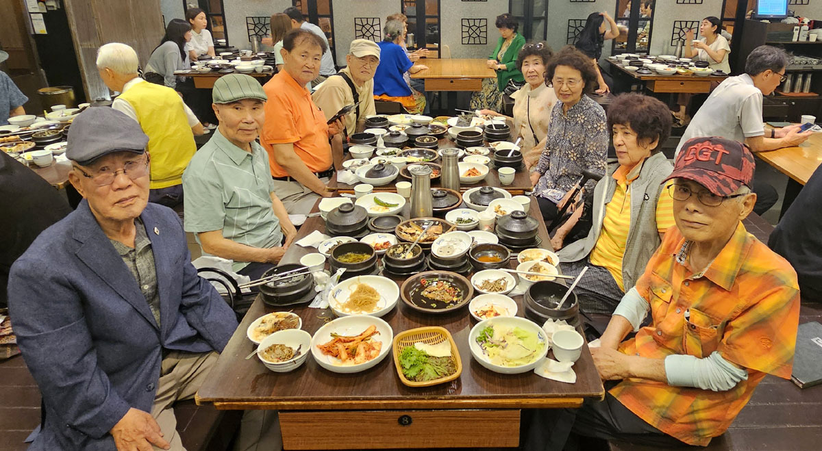 모이며 마침 점심식사를 하였는데