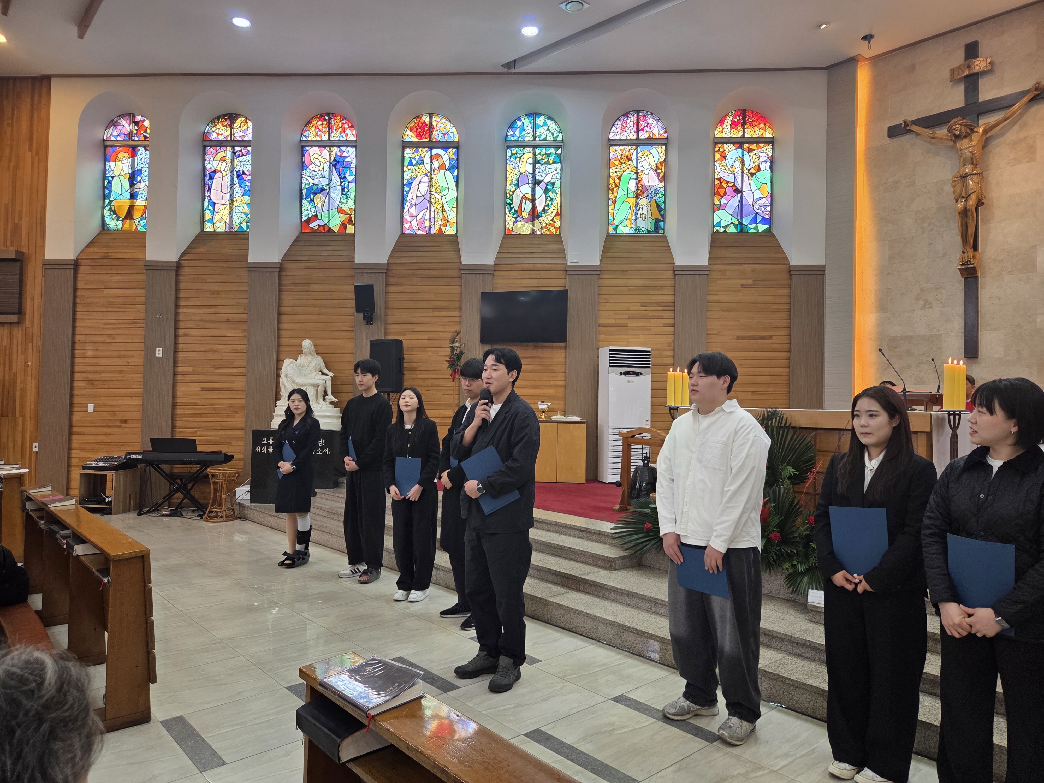 새로운 시작을 앞둔 교리교사 선생님들의 임명장 수여를 진심으로 축하드립니다! 스테인드글라스 너머로 비치는 빛처럼, 아이들의 마음속에 따뜻한 신앙의 빛을 전해주실 선생님들의 앞날을 응원하며, 새내기 교사들의 열정과 베테랑 교사들의 깊은 사랑이 어우러져 행복한 주일학교를 만들어 가시길 바랍니다.