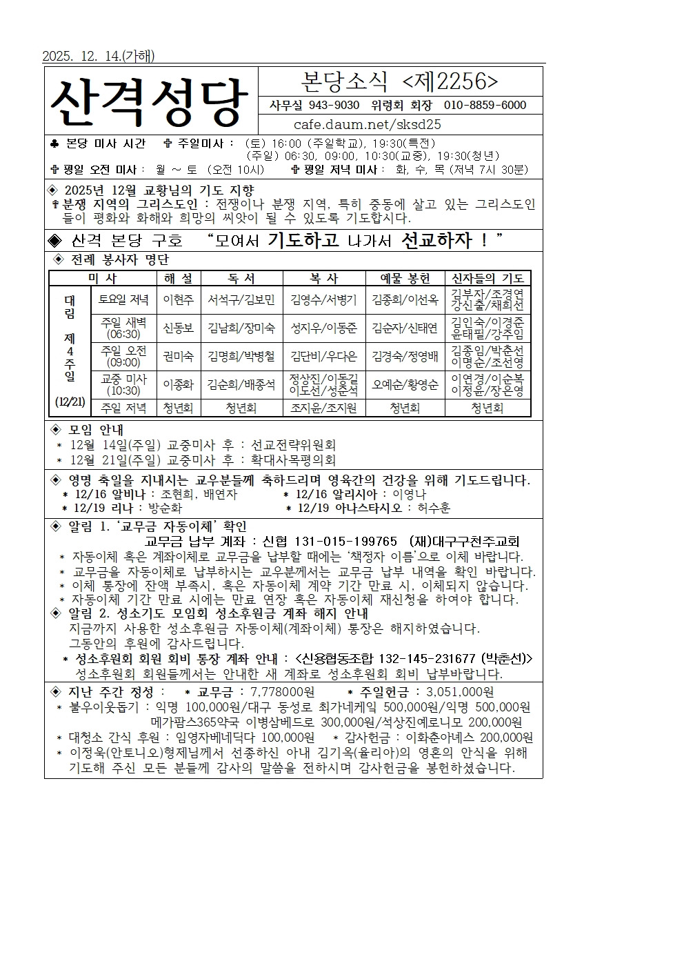 산격성당 2025년 12월 14일(주일) 주보 작성자이데레사|작성시간25.12.14|조회수55 목록 댓글 0 글자크기 작게가 글자크기 크게가 20251214.pdf112.55KB 첨부파일첨부된 파일이 3개 있습니다. jpg 파일 20251214001.jpg 다운로드 jpg 파일 20251214002.jpg 다운로드 pdf 파일 20251214.pdf 다운로드 다음검색 현재 게시글 추가 기능 열기 북마크 공유하기 신고 센터로 신고 댓글 댓글 0 댓글쓰기 답글쓰기 댓글 리스트