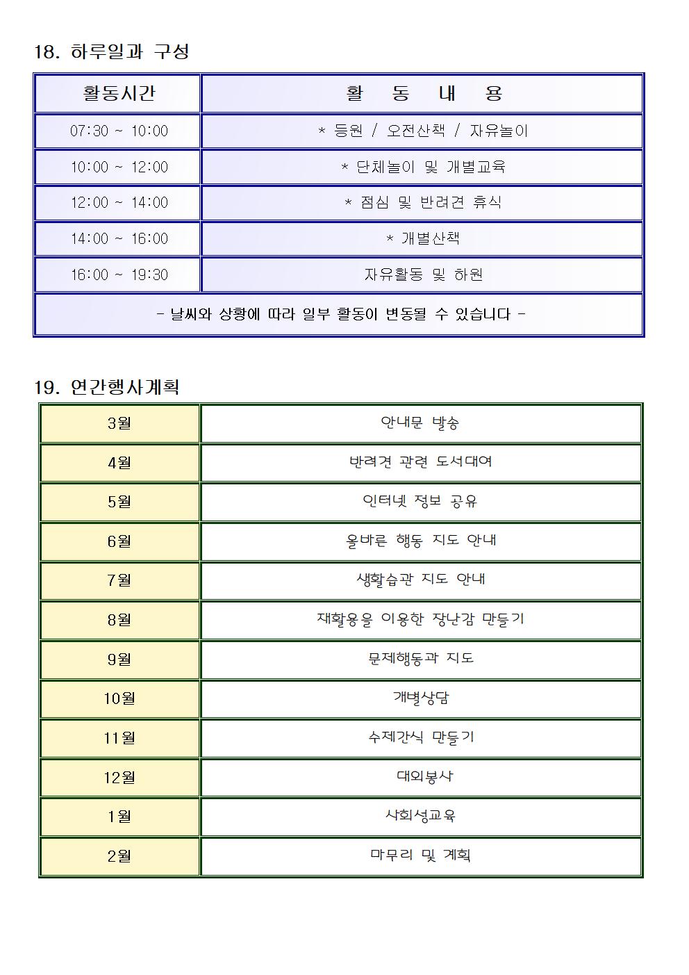 [운영계획안]2023년 운영계획안 작성자mong2ssaem|작성시간23.09.06|조회수86 목록 댓글 0 글자크기 작게가 글자크기 크게가 개린이집 실정에 맞게 시간제, 일일, 월보육료가 전면 개편 되었습니다!!더욱 노력하는 개린이집 되겠습니다~~ 많이 많이 애용해 주세요♡ ♡ ♡ 다음검색 현재 게시글 추가 기능 열기 북마크 공유하기 신고 센터로 신고 댓글 댓글 0 댓글쓰기 답글쓰기 댓글 리스트