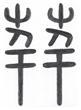 荓은 艹와 幷의 합자입니다. 艹는 독(讀) [풀]에서‘풀풀(/흩날리는 모양)’의 뜻을 나타내며, 幷의‘몰리다’에서‘풀풀 몰리다’로‘촘촘하다(/틈이나 간격이 매우 좁거나 작다)’의 뜻을 나타냅니다.