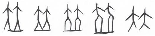 竝의 갑골문 및 전문은 공히 정면을 향한 두 사람이 나란하게 서 있는 모양에서‘나란하다’의 뜻을 나타냅니다.