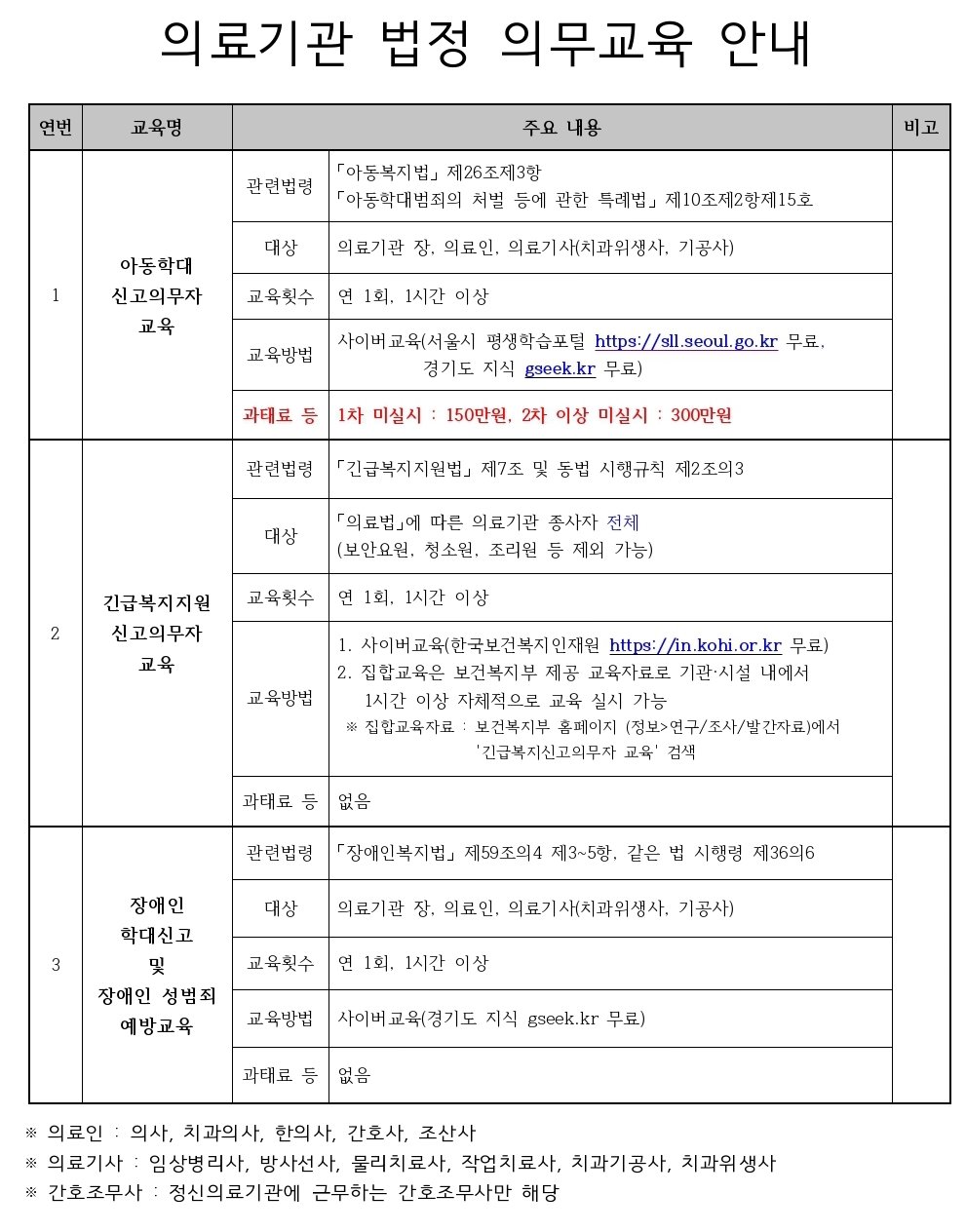 ●교육방법: 첨부한 표 참고하여 대상자별 교육이수
