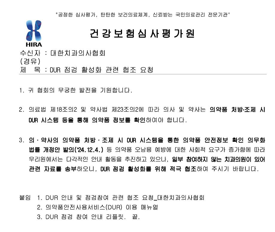 DUR 점검 활성화 관련 협조요청 작성자금천구사무국|작성시간25.05.08|조회수4 목록 댓글 0 글자크기 작게가 글자크기 크게가 dur관련_공문.pdf8.52MB 첨부파일첨부된 파일이 2개 있습니다. etc 파일 캡처.JPG 다운로드 pdf 파일 dur관련_공문.pdf 다운로드 다음검색 현재 게시글 추가 기능 열기 북마크 공유하기 신고 센터로 신고 댓글 댓글 0 댓글쓰기 답글쓰기 댓글 리스트