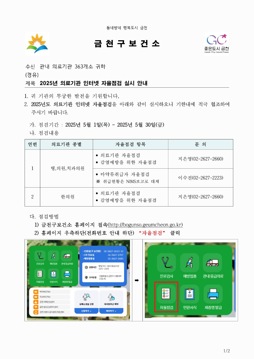 <2025년 의료기관 인터넷 자율점검 실시안내>