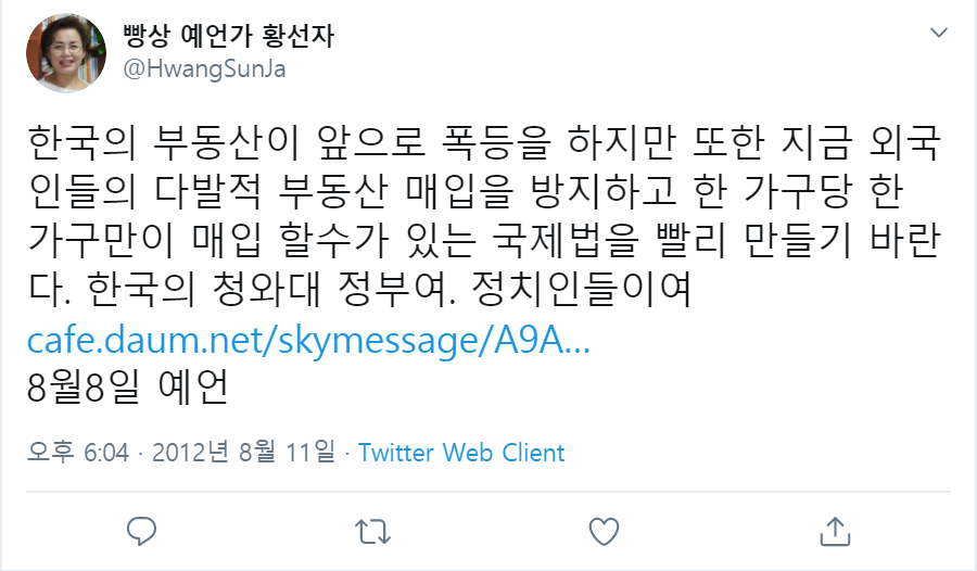 ↓ 다음 카페 - 빵상 예언가 황선자 - 예언적중 2012년 8월 8일 글!!!!!