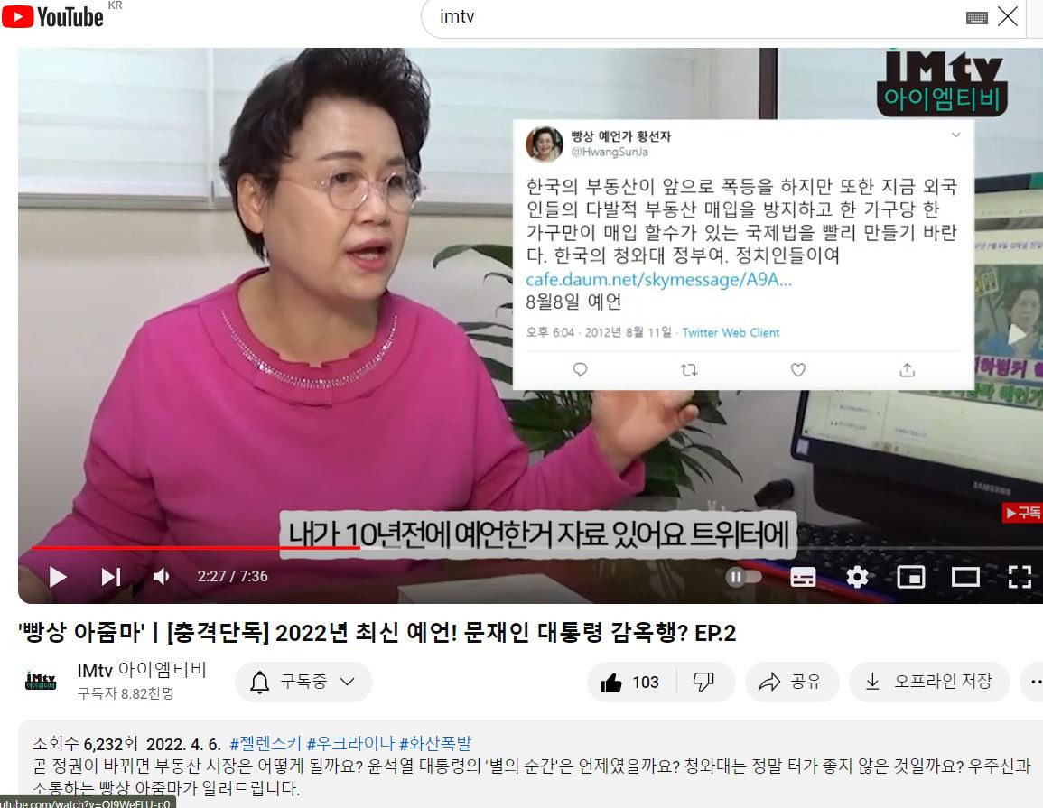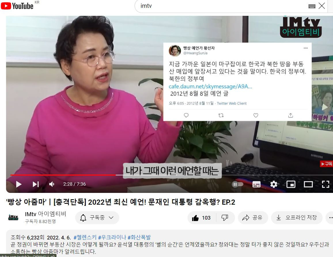 2022년 4월 6일 예언적중!!!!! 황선자 예언가 빵상!!!!!