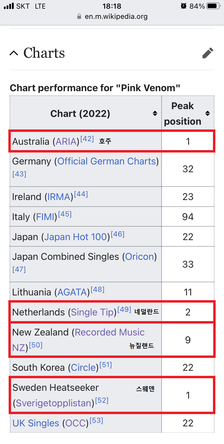 호주 싱글 차트에서 1위를 한 것도 역시