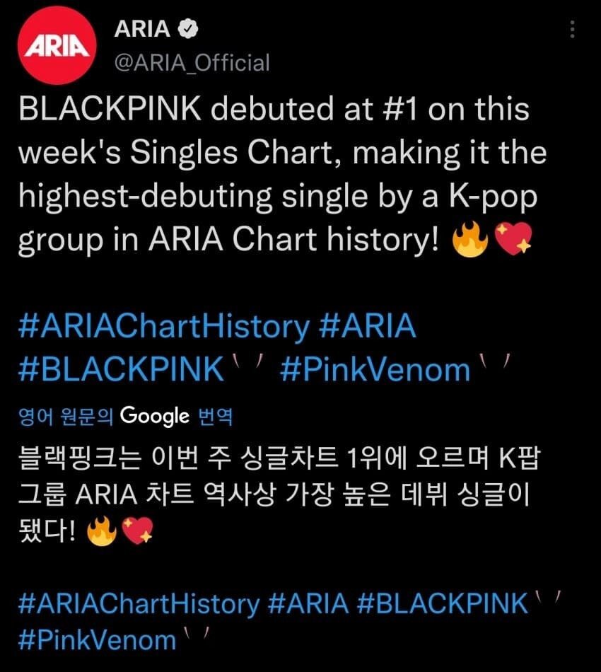 호주 ARIA 차트 싱글 1위로 데뷔!