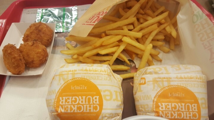 저녁 롯데리아치킨버거세트(콜라는남김,감튀1/2, 새우크런치2개)