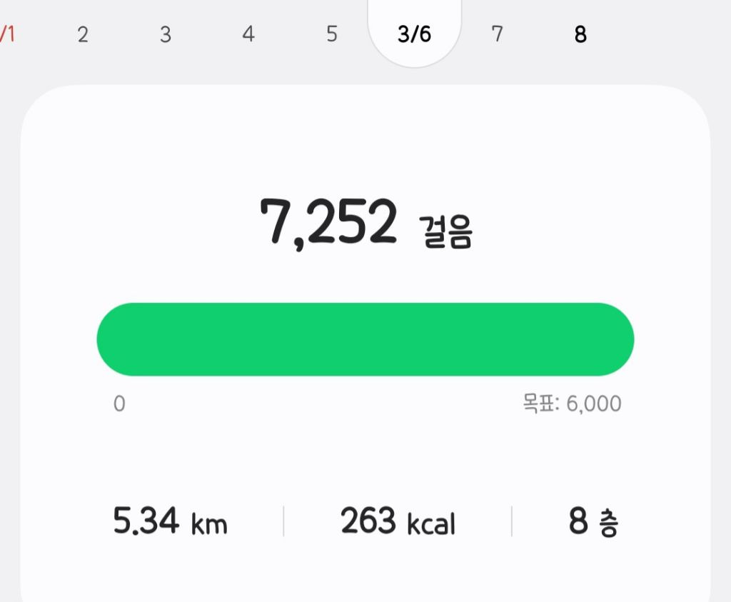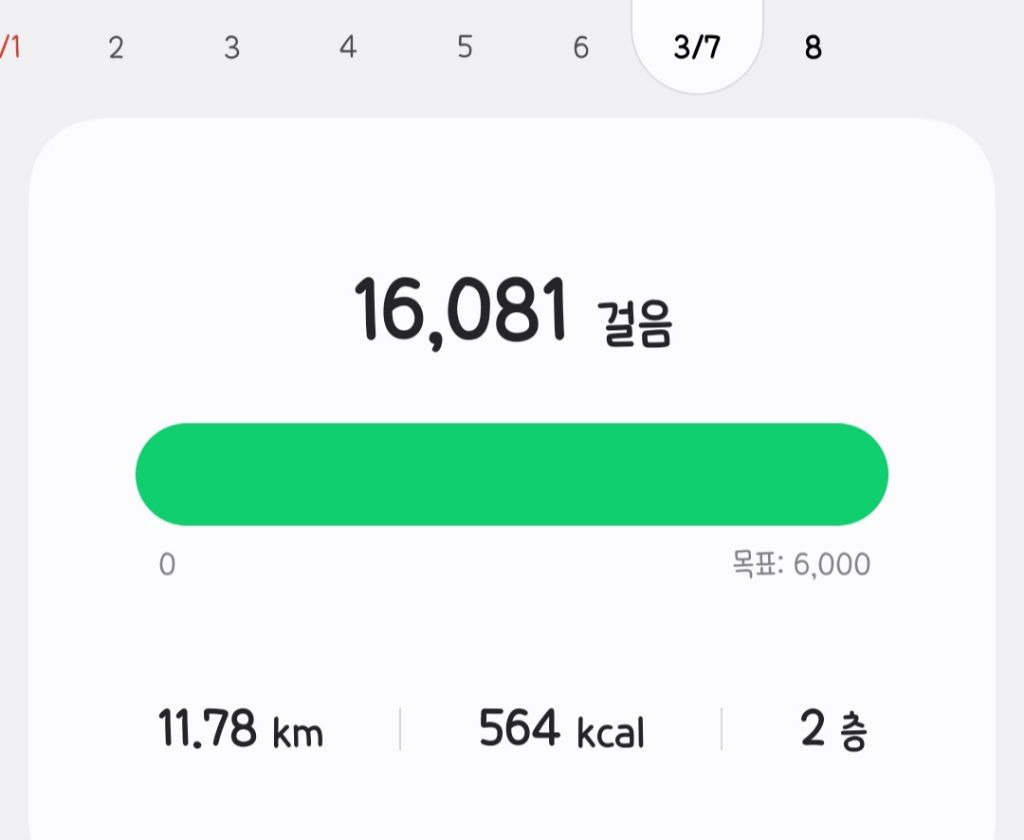 | 간식 | 8일 17:00 | 편의점에서 파는 크림빵 2/3개 | 유산소운동 | 6일 : 7252보 / 7일 : 16081보 (풋살, 걷기) | |||
