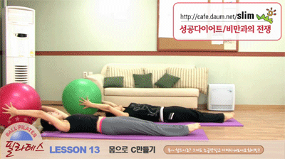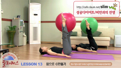복부근육과 다리라인을 예쁘게 만들어 주는 볼 필라테스동작 배워봅시다~!