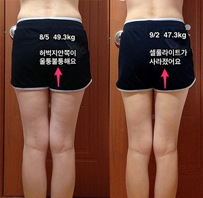 오늘(9/2) 확인해보니 지우개로 지운것마냥 셀룰라이트가 사라졌어요!! (궁뎅이도!)