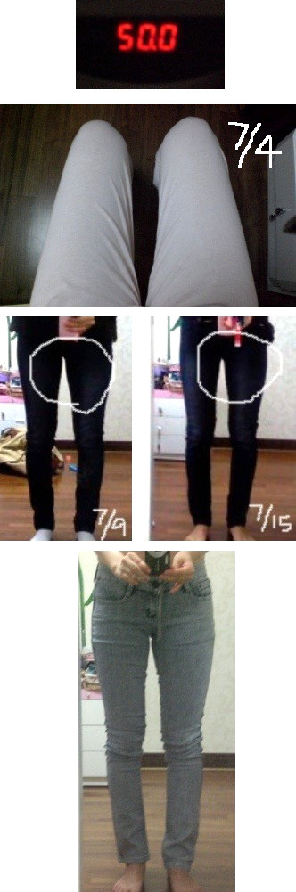 위 사진 보시면 일주일 만에 허벅지 차이 보이시져! 저때 몸무게는 49 48 왔다 갔다 했어요