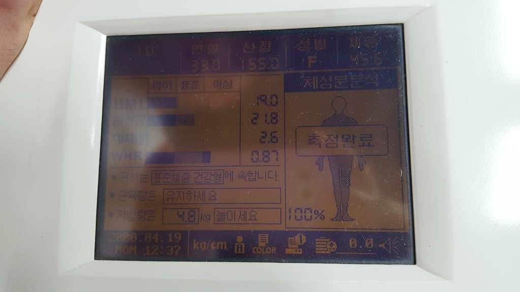 [◐질문◑]인바디 햇는데 이것좀봐주세요 ㅜㅜ이상해여 작성자둔한어린양|작성시간16.04.18|조회수388 목록 댓글 1 글자크기 작게가 글자크기 크게가 수분이너무 빠진건지..요세설사을 2틀해서암튼오늘 인바디 햇운데 용지없어어 폰으로찍엇어요복부는 너무 안좋고..체지방은 너무이하예여..낼모레 다시 해보는게 좋겟죠??설사 끝나고... 다음검색 현재 게시글 추가 기능 열기 북마크 공유하기 신고 센터로 신고 댓글 댓글 1 댓글쓰기 답글쓰기 댓글 리스트 작성자보부 | 작성시간 16.04.18 수치가 오류인듯 합니다. 댓글 전체보기