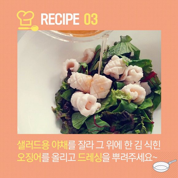 오늘은 이 오징어에 아삭한 야채를 곁들여 새롭고 신선한 메뉴가 탄생시켜보도록 할게요.