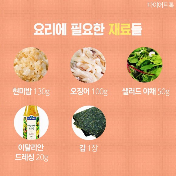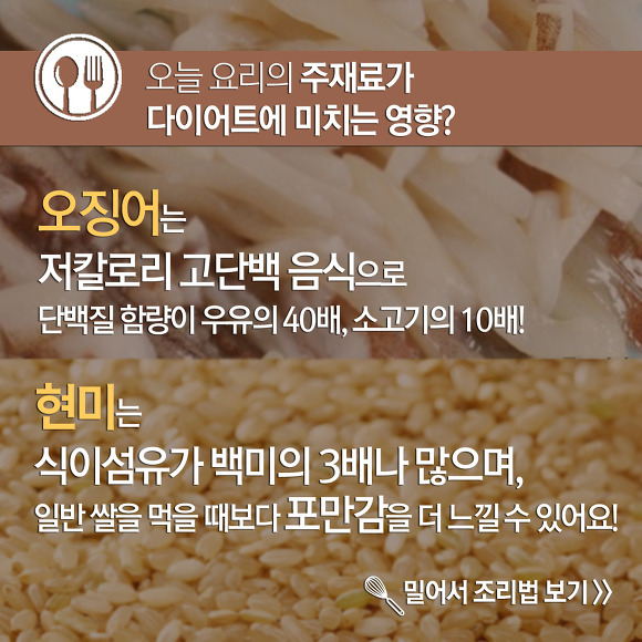 단백질이 가득 든 오징어와 식이섬유가 가득한 현미밥으로 꾸리는 한 끼 식사!
