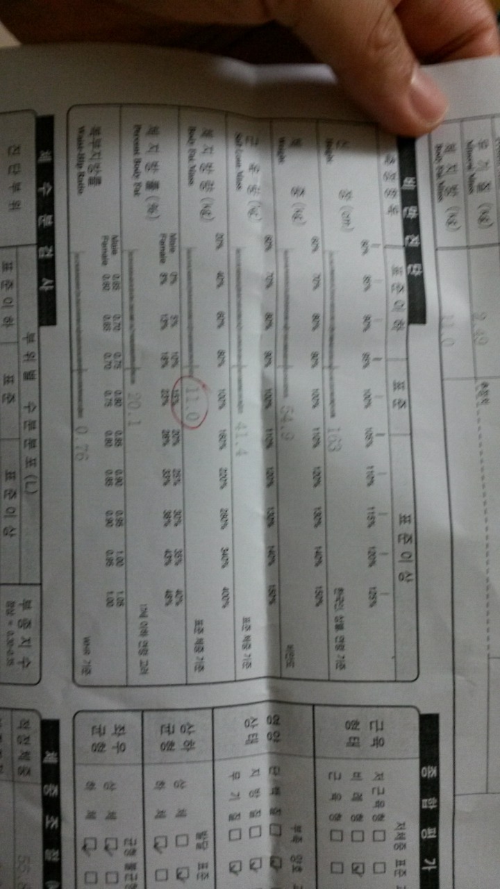 근육량 현재 41키로에 체지방량 11키로인데..