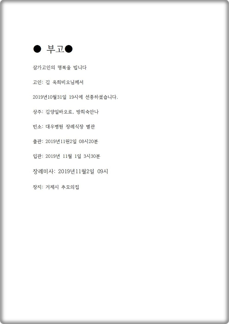 장례미사 - 고 김옥희(비오) 옥포성당 2019.11.02 오전 09시 00분