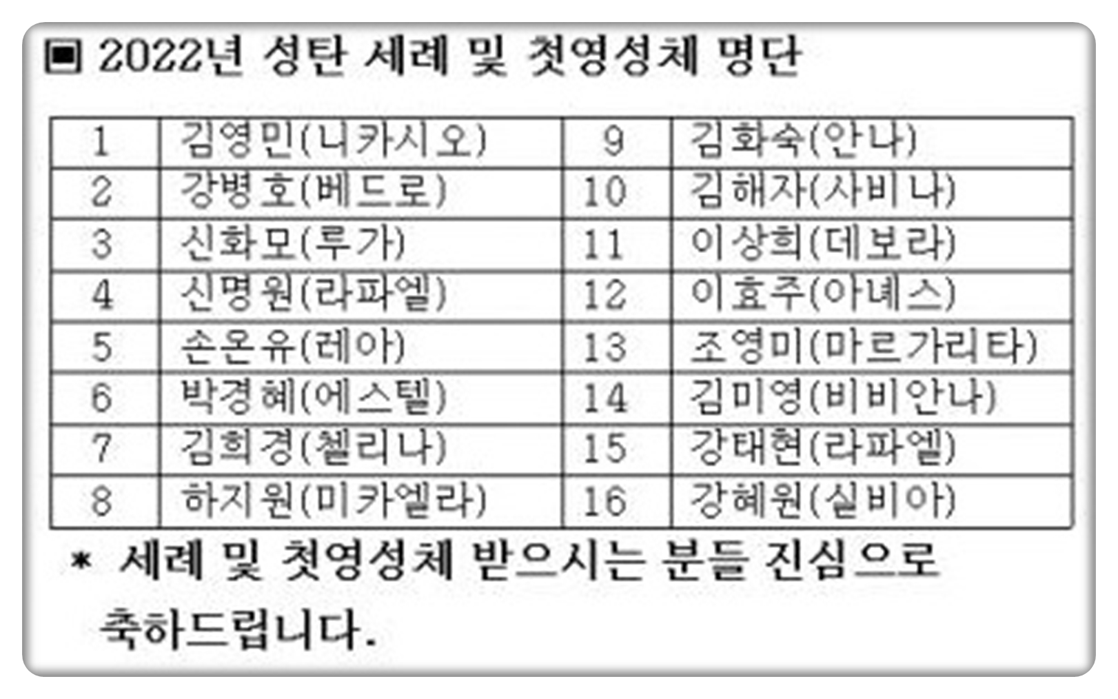 성탄 세례식 단체 및 가족 사진 - 옥포성당 2022.12.25 작성자세례자 요한|작성시간23.01.01|조회수117 목록 댓글 0 글자크기 작게가 글자크기 크게가 성탄 세례식 단체 및 가족 사진 - 옥포성당 2022.12.25 다음검색 현재 게시글 추가 기능 열기 북마크 신고 센터로 신고 댓글 댓글 0 댓글쓰기 답글쓰기 댓글 리스트